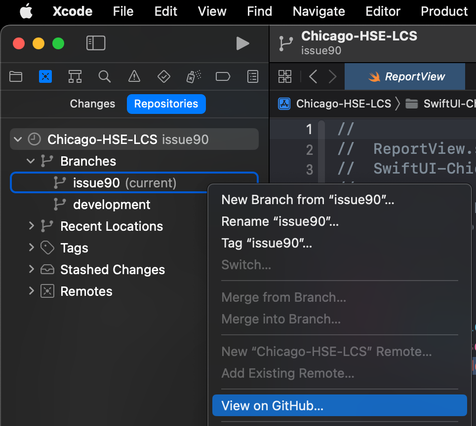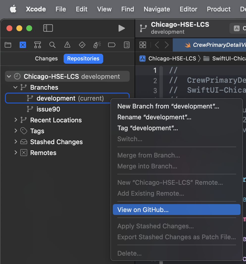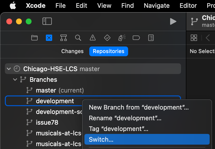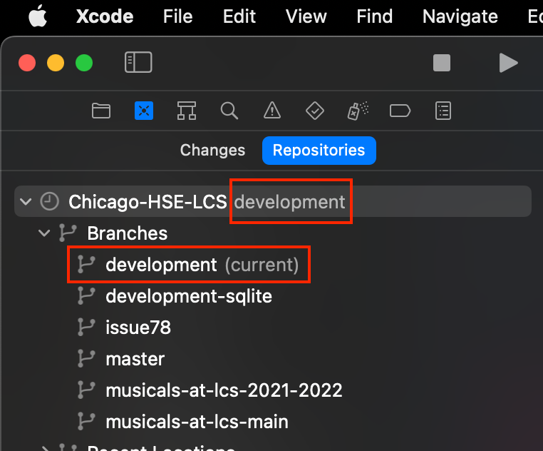 developmentbranch in Xcode:
