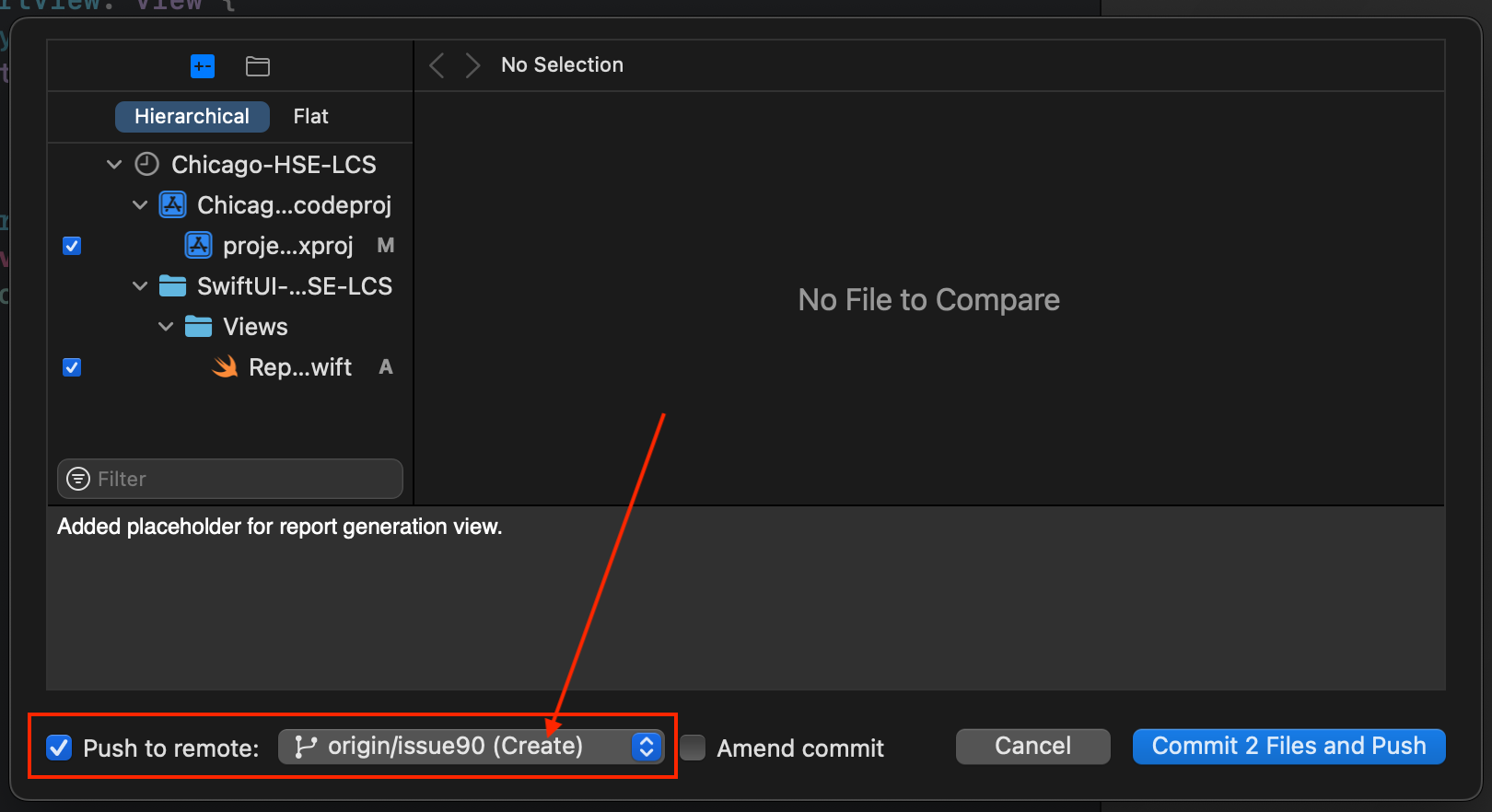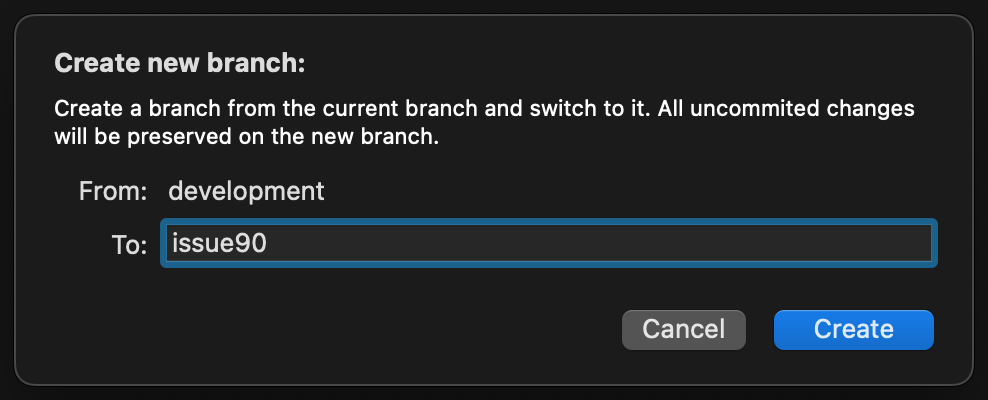 issue90branch as you work on the issue.The first time you push a commit, a remote branch will be created.