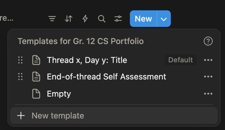 Go to Notion, click the small arrow at right beside the blue New button, then select the End-of-thread Self Assessment option.
