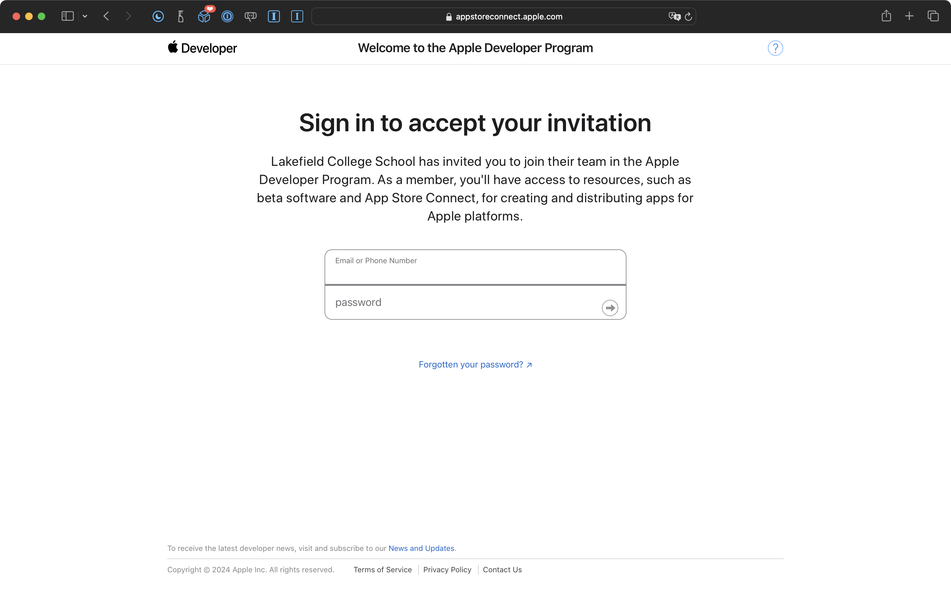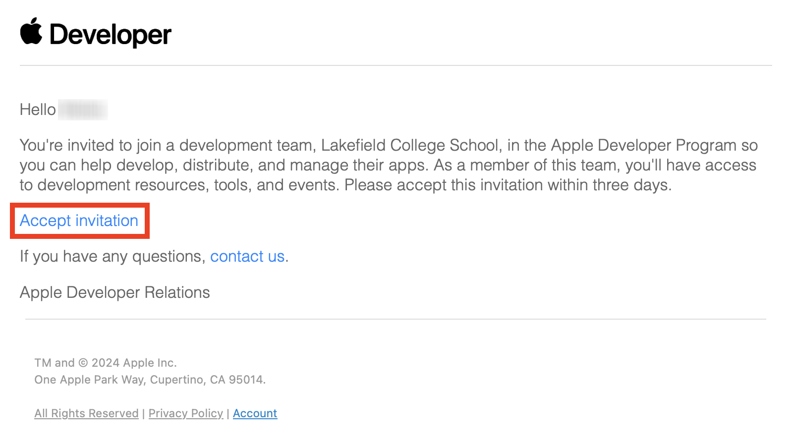 Please open your school email and look for a message from Apple Developer titled You’re invited to join a development team.