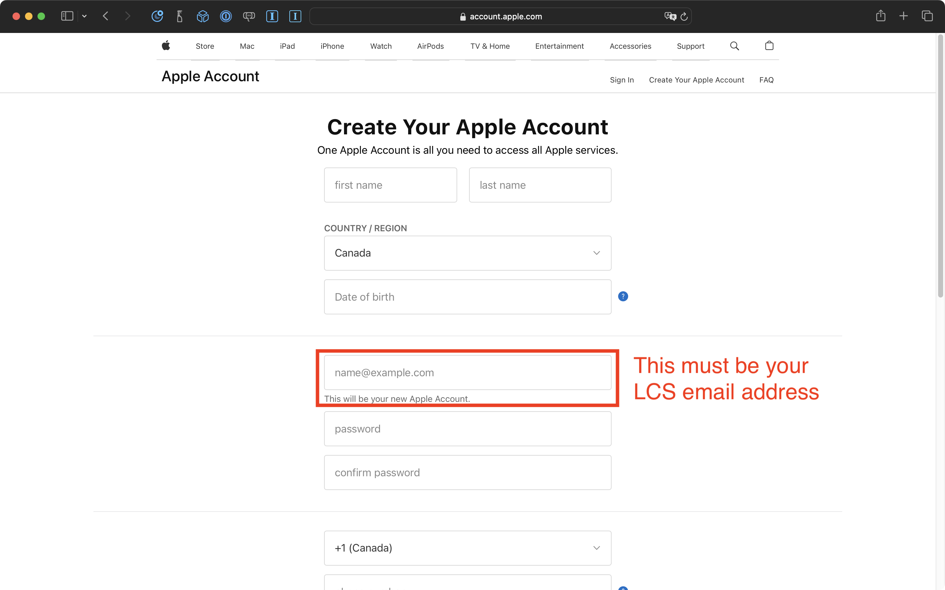 You must create this account using your LCS email address.
